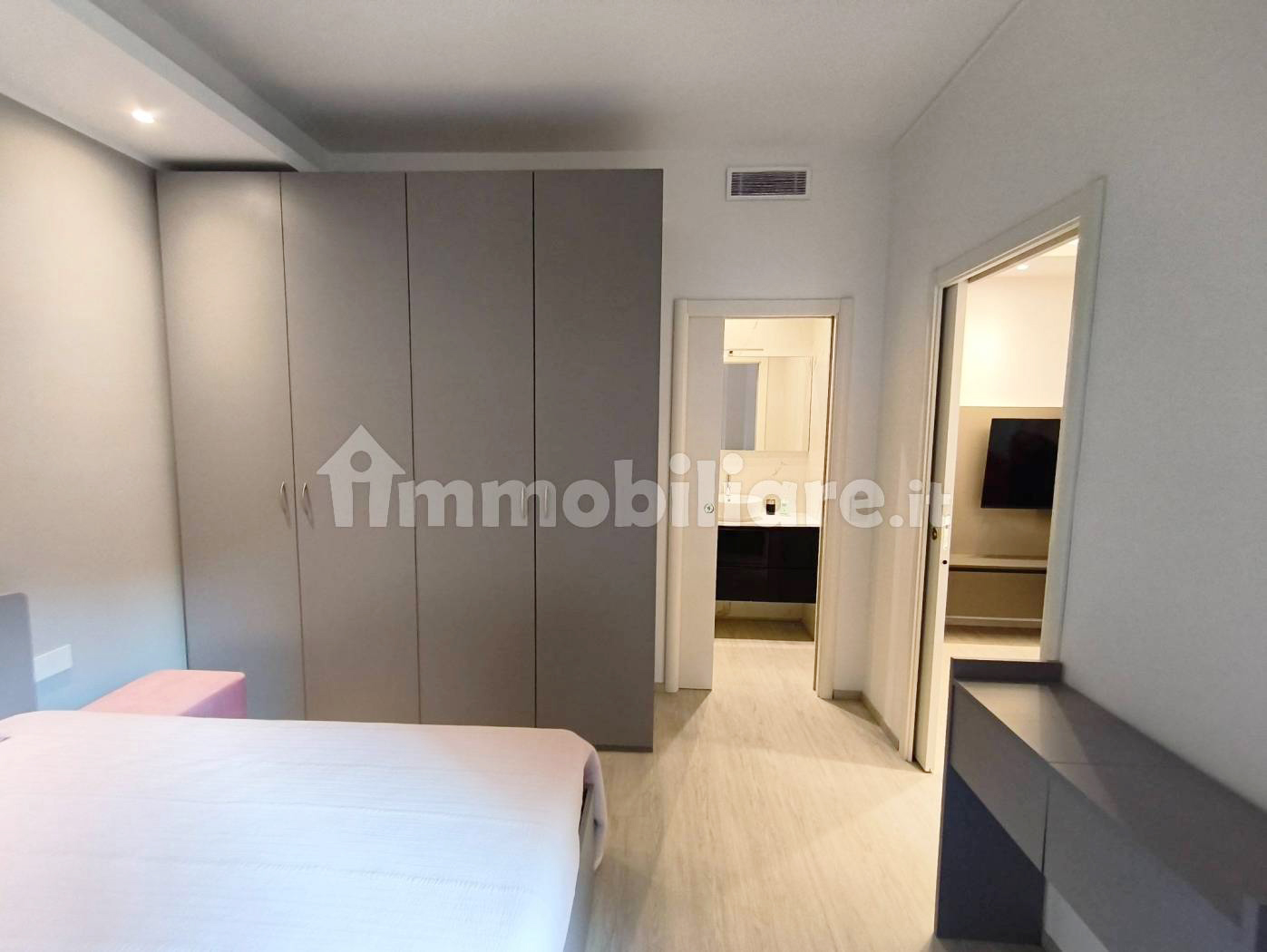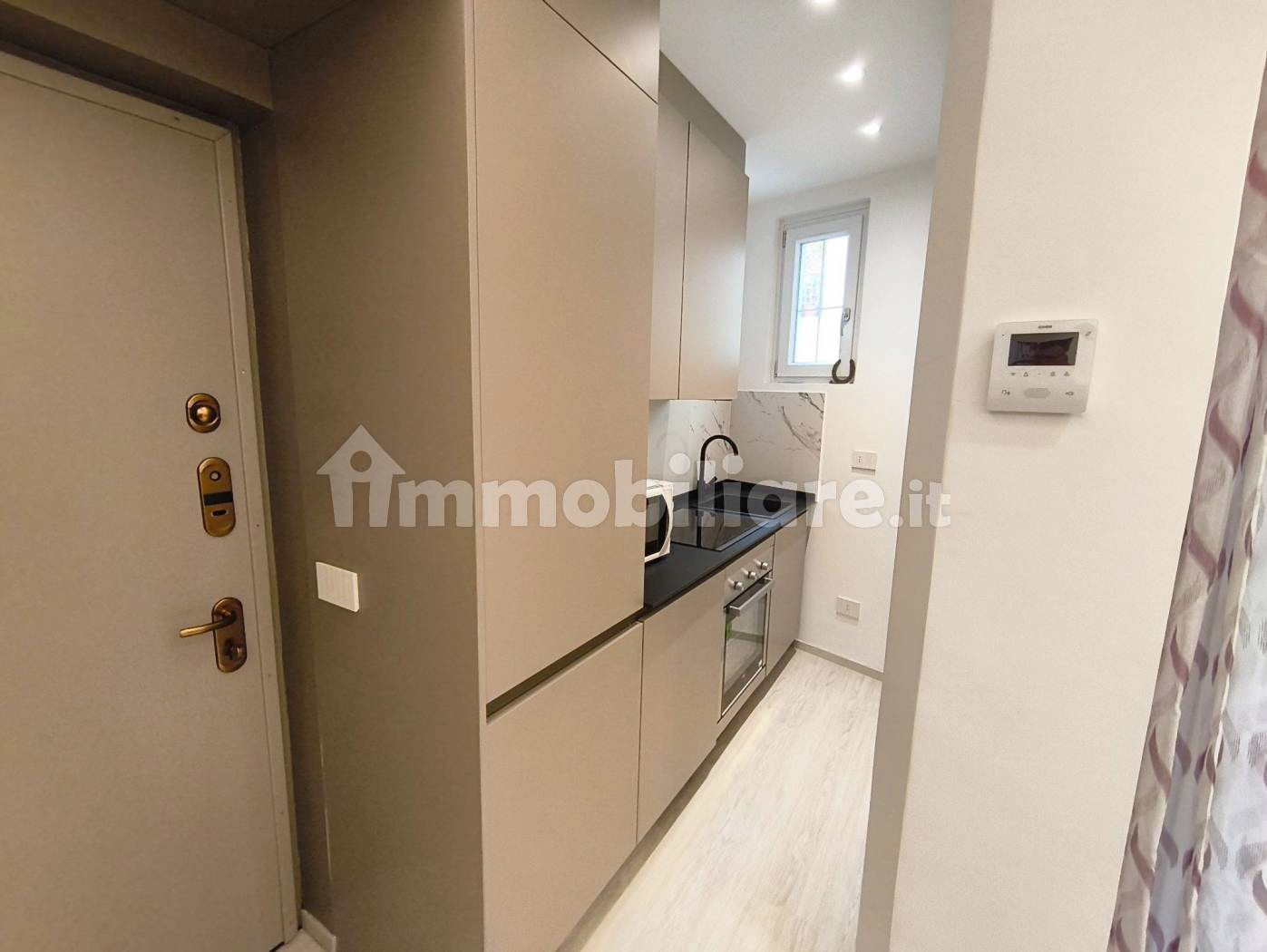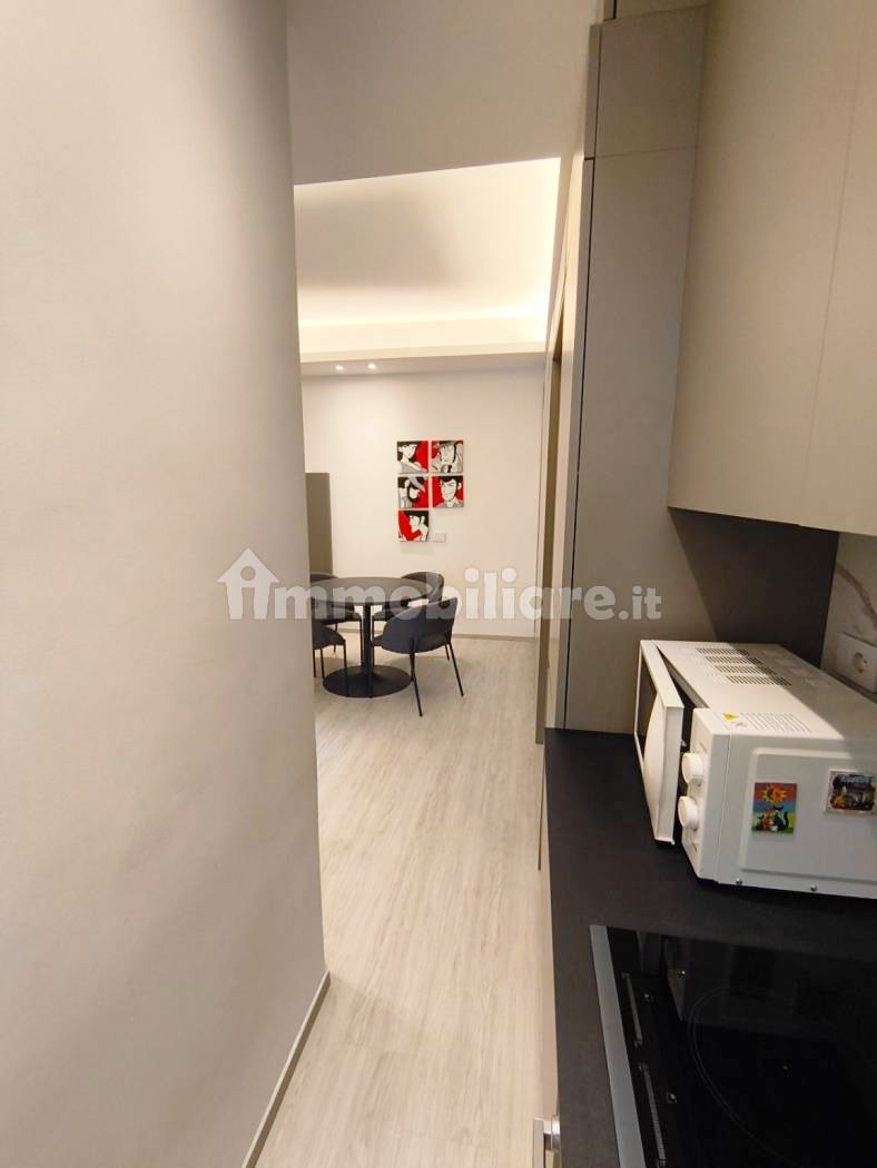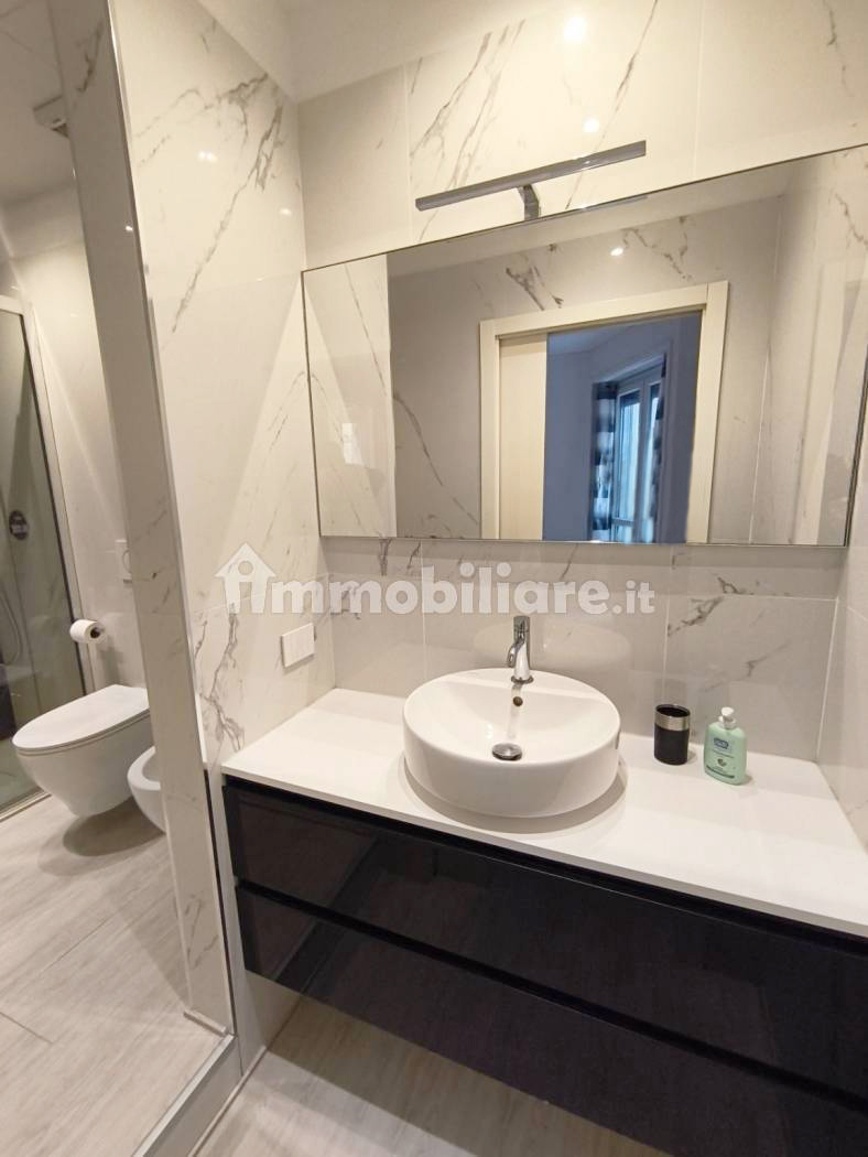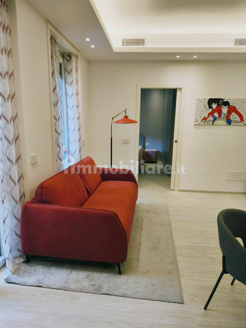 L’immobile presenta una razionale distribuzione interna: l’ingresso si apre su un luminoso soggiorno con area living e zona pranzo, servito da una moderna cucina lineare a vista, con ampia armadiatura, mobile giorno con televisore e divano. La zona notte comprende una spaziosa camera da letto che affaccia su un tranquillo balcone privato. Il lussuoso bagno è completo di sanitari sospesi, lavabo da appoggio e di un’ampia doccia walk-in con cristallo.