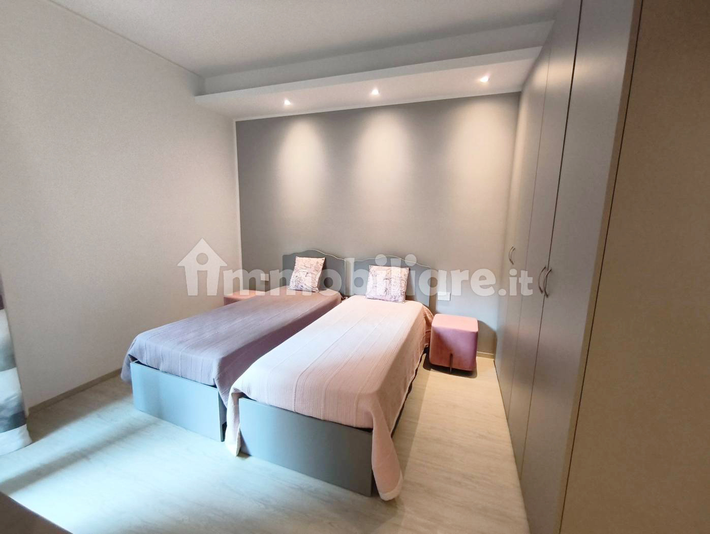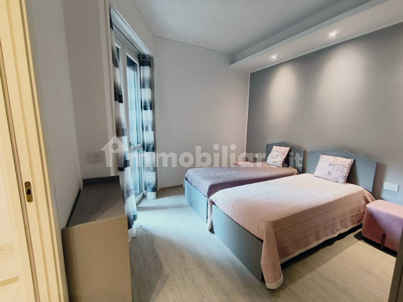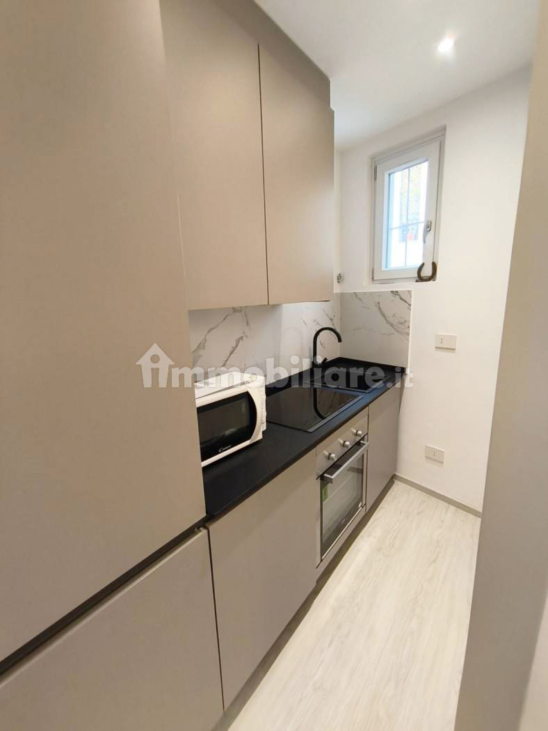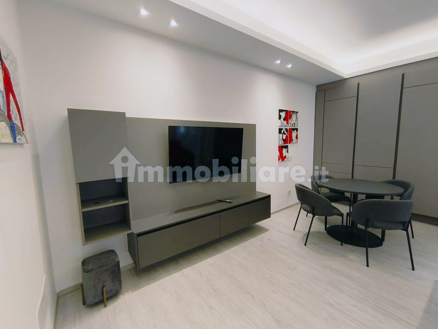 L’immobile presenta una razionale distribuzione interna: l’ingresso si apre su un luminoso soggiorno con area living e zona pranzo, servito da una moderna cucina lineare a vista, con ampia armadiatura, mobile giorno con televisore e divano. La zona notte comprende una spaziosa camera da letto che affaccia su un tranquillo balcone privato. Il lussuoso bagno è completo di sanitari sospesi, lavabo da appoggio e di un’ampia doccia walk-in con cristallo.